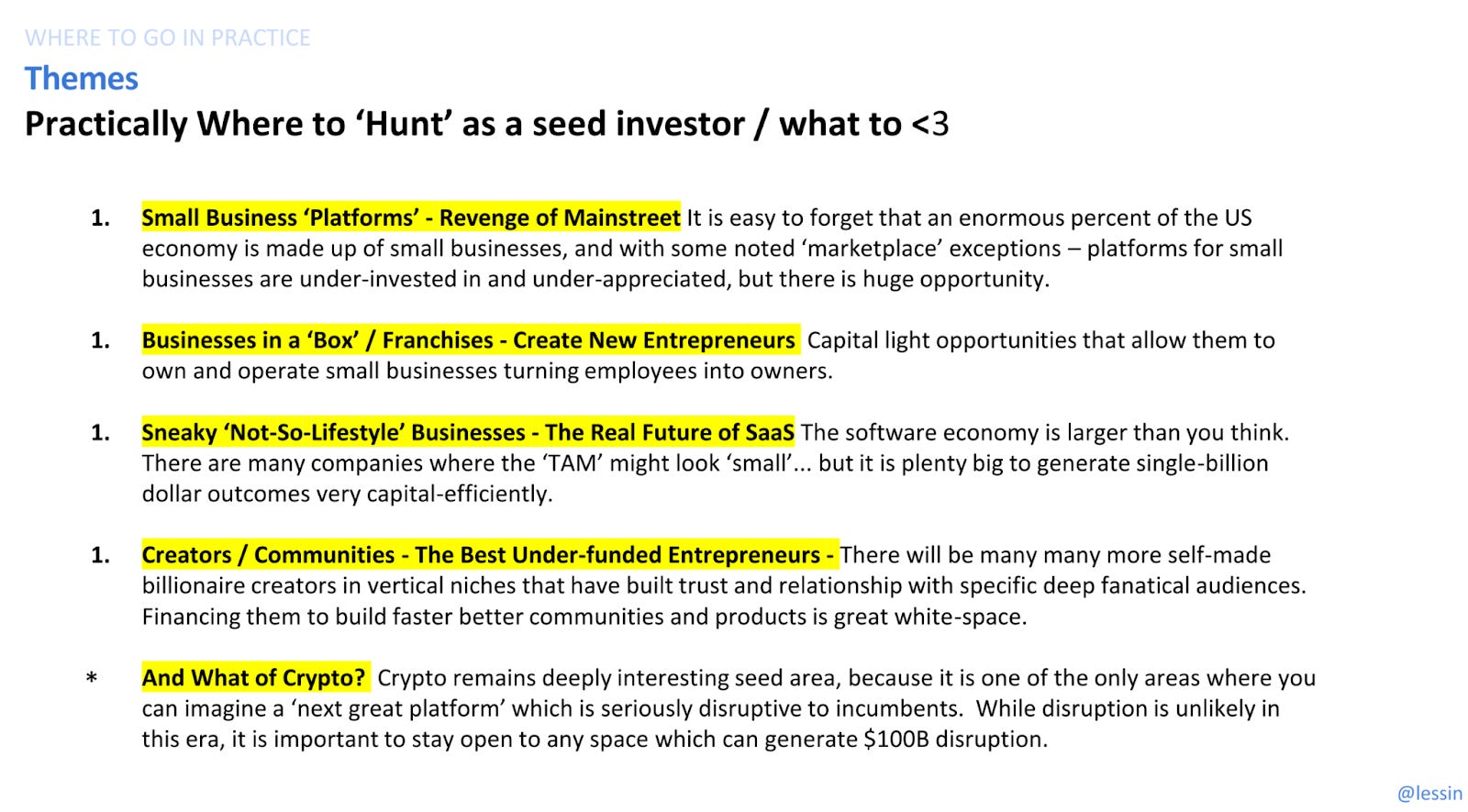 Sam Lessin articulates this notion even more effectively in his examination of the current VC and startup investing landscape. His insights shed light on why hyper-niche startups are more likely to emerge in the current tech landscape. There is a vast opportunity space for ambitious, self-reliant founders to develop innovative solutions with small teams and modern tooling.